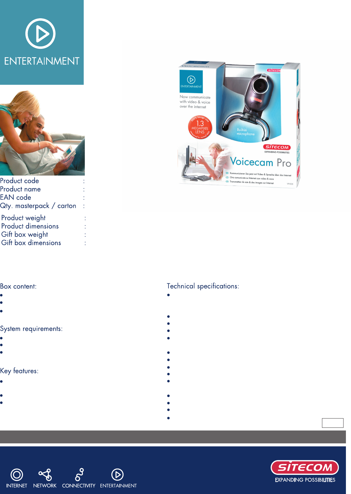 Consulte online ou descarregue Ficha Técnica para Webcams Sitecom VP-005. Sitecom Voicecam Pro Manual do Utilizador